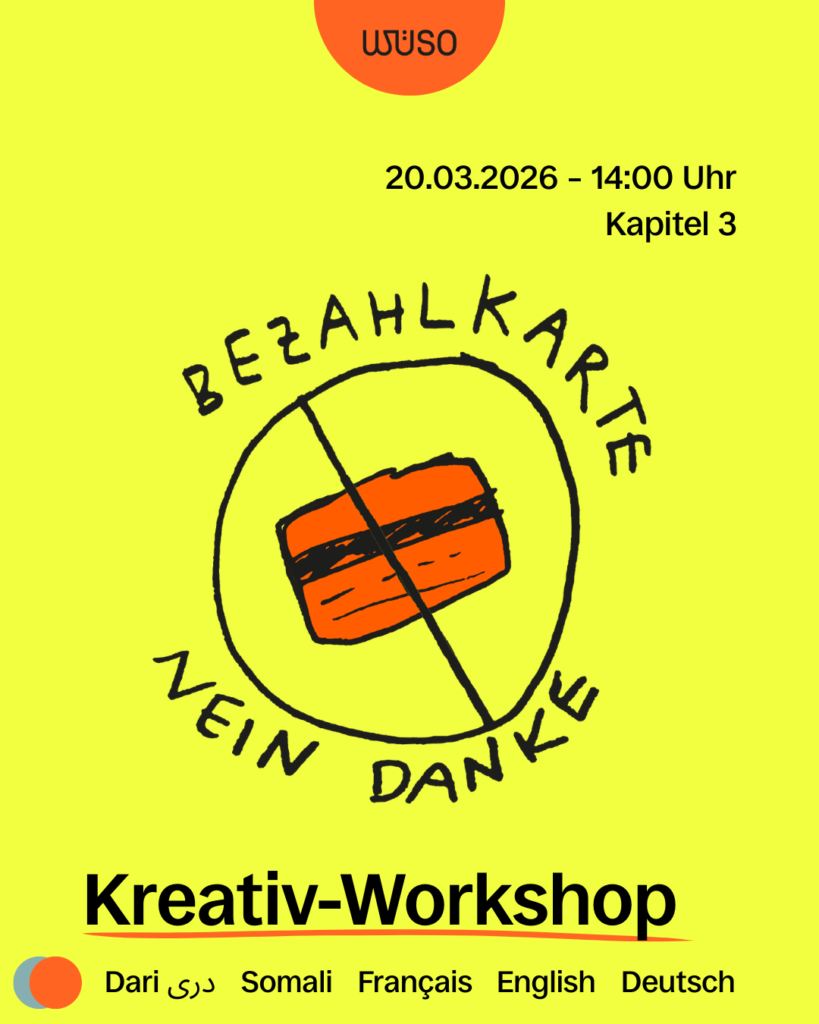 Das wollen wir ändern: In einem Kreativ-Workshop gestalten wir Demo-Schilder, Sticker, Postkarten und anderes Protestmaterial – und bringen die Bezahlkarte so zurück in den öffentlichen Raum.